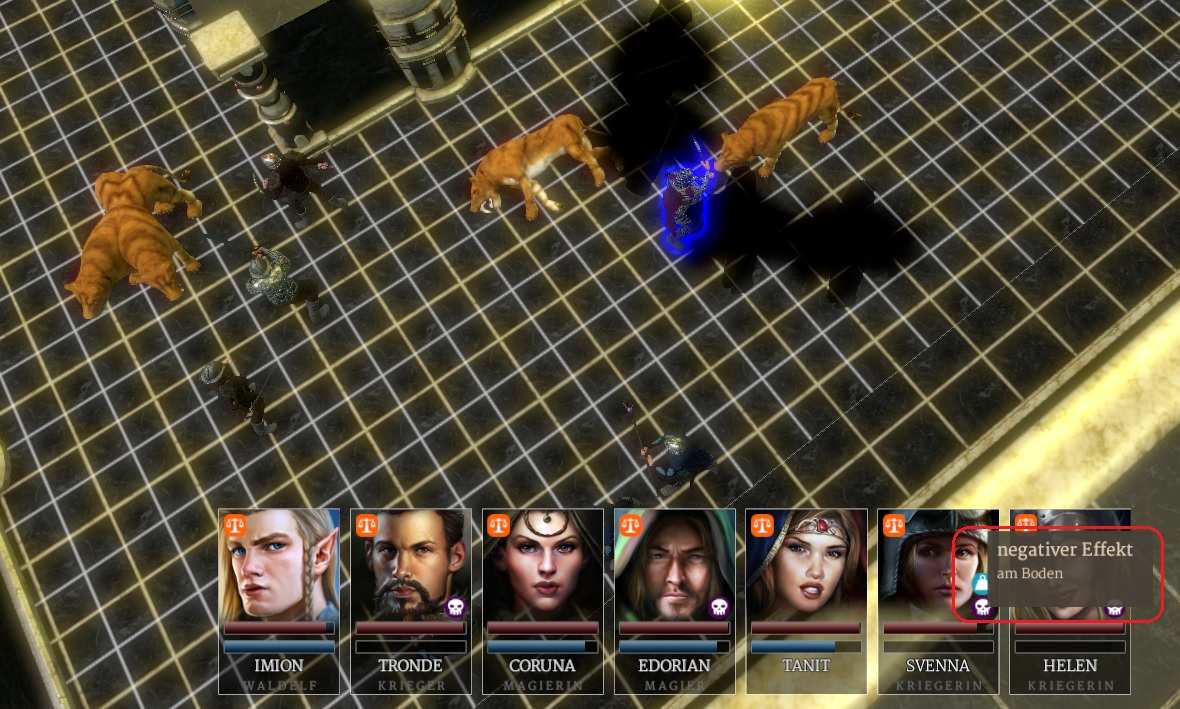 Mein Char Svenna wurde vom Säbelzahntiger (Gewölbe unter Tjolmar, zweites Level) umgeworfen und kann diesen in der nächsten Kampfrunde