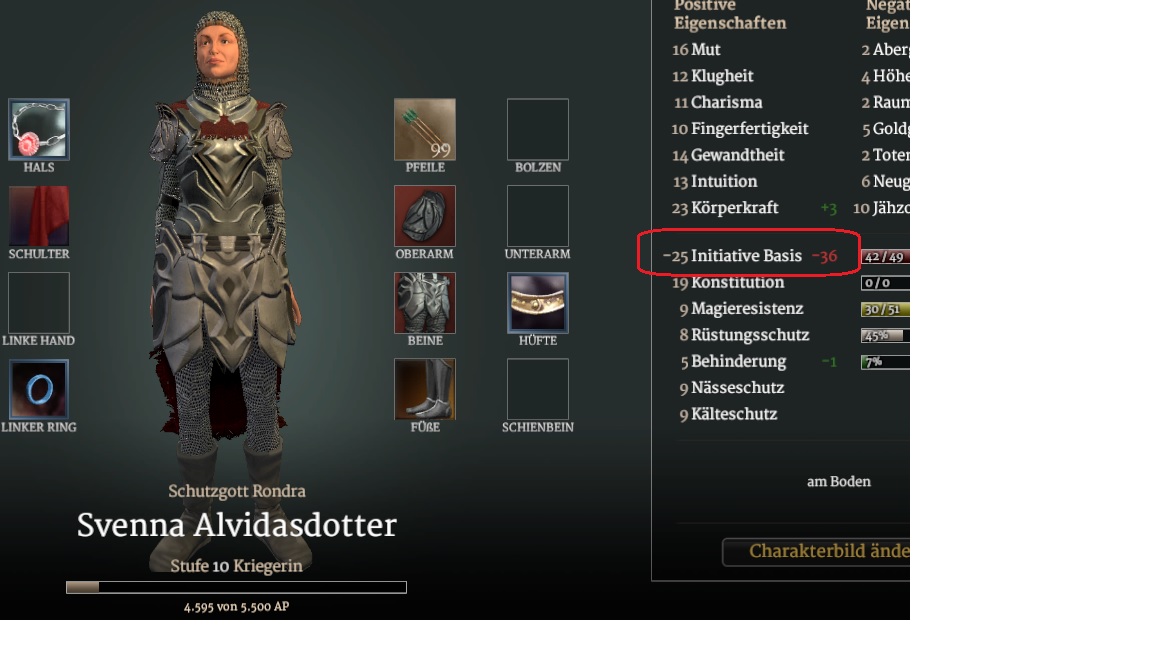 Mittlerweile haben die Charaktere eines jeden Spielers die Stufen 9 oder 10 erreicht (wenn sie diese aus Schicksalsklinge importiert haben). Sie haben reichlich Lebenspunkte, hohe AT-Werte und auch hohen Rüstungsschutz.