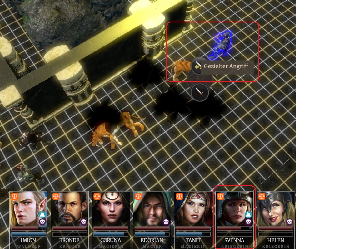 Mein Char Svenna wurde vom Säbelzahntiger (Gewölbe unter Tjolmar, zweites Level) umgeworfen und kann diesen in der nächsten Kampfrunde