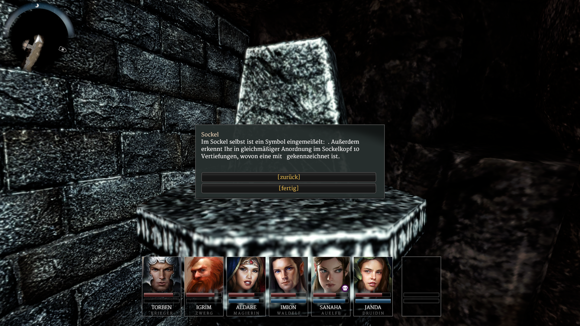 bei den Sockel-Dialogen im Phextempel werden die Symbole nicht angezeigt (s. Screenshot im Anhang). Liegt das am fehlenden Talent meiner Truppe oder ist das ein Fehler?