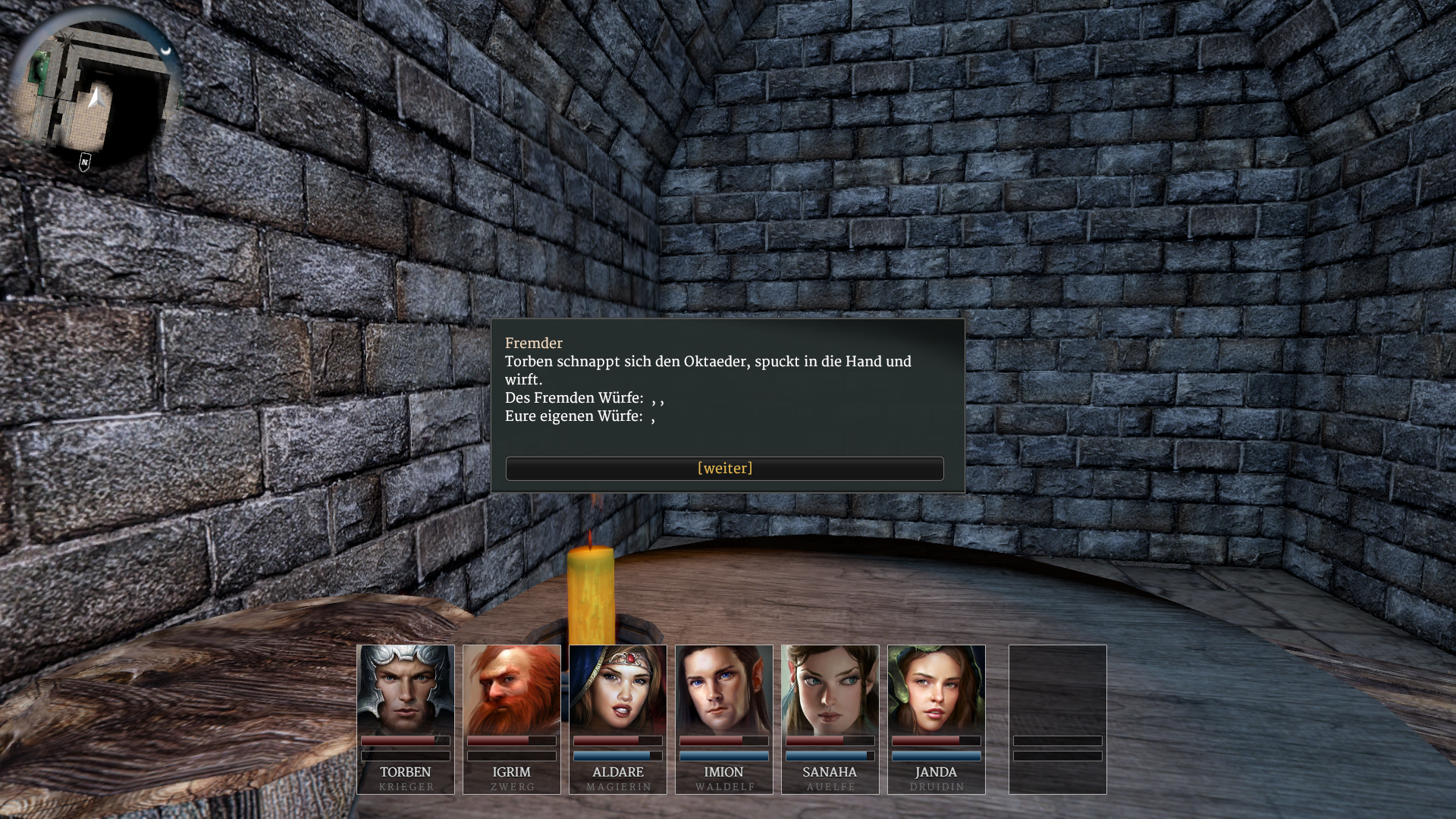 Ein ähnliches Problem hatte ich auch schon beim Würfelspieler im ersten Raum vom Phextempel, dort wurden die gewürfelten Zahlen nicht angezeigt (es waren nur die Kommas zu sehen)